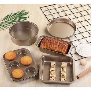 – Bộ sản phẩm gồm 5 chiếc khuôn, khay làm bánh với đầy đủ những kiểu dáng cơ bản nhất: